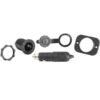 Αδιάβροχη πρίζα με το παρεχόμενο κάλυμμα, είτε όταν έχει τοποθετηθεί το βύσμα, το οποίο είναι εξοπλισμένο με ένα ειδικό στεγανό κολάρο και ένα σύστημα “lock-in” που σας επιτρέπει να κλειδώσετε το βύσμα περιστρέφοντας το. Συναρμολόγηση της υποδοχής με ένα οπίσθιο παξιμάδι και ένα πάνελ με δύο βίδες.